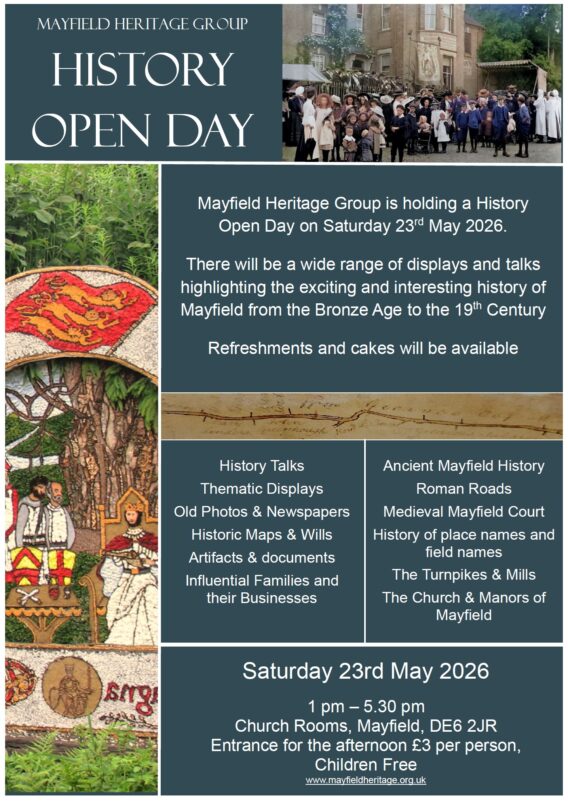 Mayfield Heritage Group is holding a ‘Mayfield History Day’ on the afternoon of Saturday the 23rd of May 2026 in the Church Rooms where you can find out about the early history of Mayfield and some of the exciting results starting to emerge from recent research.